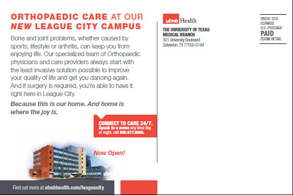 These pieces were created for University of Texas Medical Brand (UTMB) in partnership with Thread Marketing Group (http://www.threadgroup.com). They were inspired by the brilliant UTMB tagline: Working together to work wonders. The pieces were created to reposition UTMB as an important local healthcare resource in the Southeastern Texas market, where it had previously been considered a research hospital.